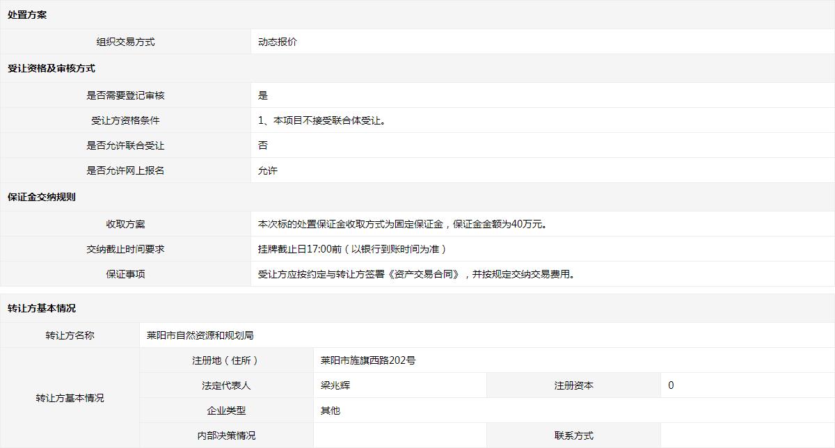 • 轉讓方:萊陽市自然資源和規(guī)劃局