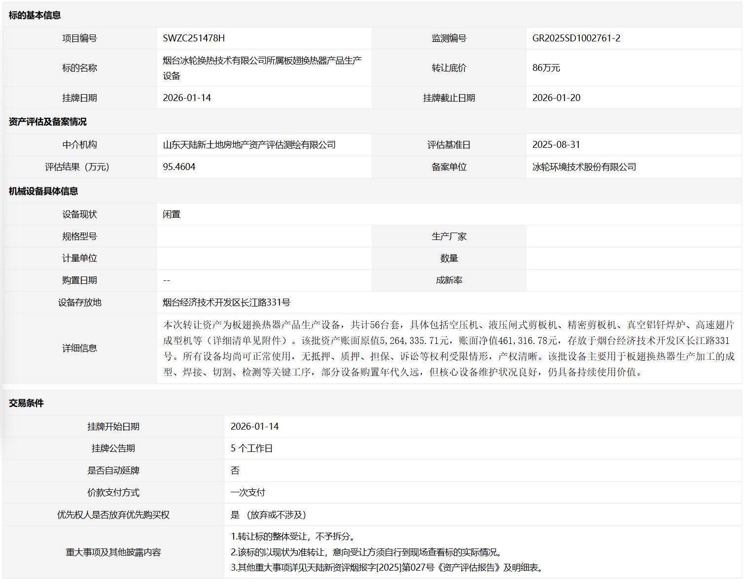 轉(zhuǎn)讓方:煙臺冰輪換熱技術(shù)有限公司
