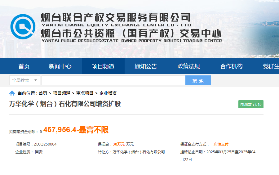 煙臺(tái)聯(lián)合產(chǎn)權(quán)創(chuàng)新服務(wù)賦能?chē)?guó)企混改萬(wàn)華化學(xué)子公司成功引入戰(zhàn)略投資45.79億元